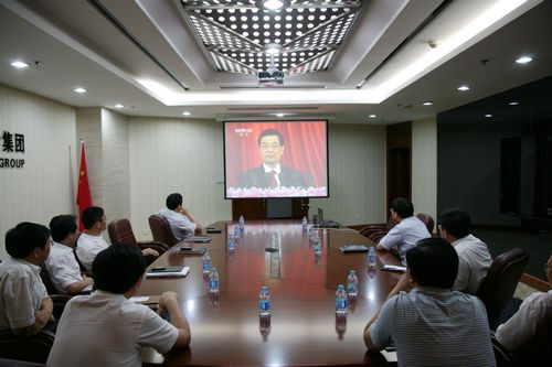 在总部视频会议室,公司在马领导班子成员及总经理助理、副三总师、公司纪委委员、机关党委委员,集中收看了整场庆祝大会和胡锦涛总书记的重要讲话。
