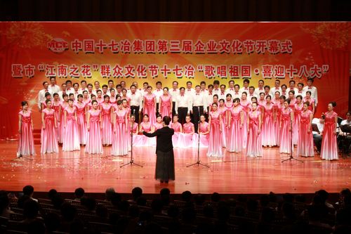 在马鞍山市举办第27届“江南之花”群众文化节期间,中国十七冶集团借举办第三届企业文化节契机,举办了马鞍山市第27届“江南之花”群众文化节17场专场演出中的首场演出——十七冶“歌唱祖国喜迎十八大”文艺汇演。公司10支合唱队700多名员工的精彩演出,获得了市委、市政府和有关部门的高度称赞,社会反响强烈,从而获得了市委宣传部和市文化委的表彰。