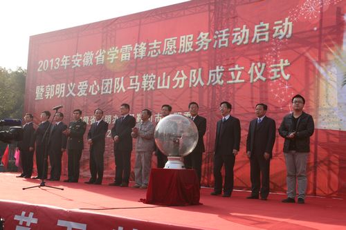 33上午,在全国第50学雷锋纪念日即将到来之际,2013年安徽省学雷锋志愿服务活动启动暨郭明义爱心团队马鞍山分队成立仪式在大华广场隆重举行。中国十七冶集团学雷锋志愿服务队参加了仪式。