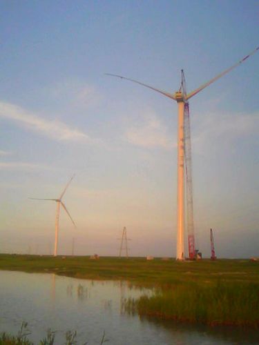 该风场由三峡新能源东北分公司投资兴建,位于吉林省白城市海坨乡辖区,地处盐碱地带。风力与太阳能发电工程技术公司承担了242.0MW风机和11.5MW风机的吊装任务。自420开工以来,由于气候转暖,使盐碱层逐渐融化,造成地基承载不足风场道路下陷、风机设备进场不利。面对困难,项目部精心编制施工方案,严格组织施工程序,全体施工人员充分发扬“高效严谨、精细务实”的企业作风,优质安全地完成了施工任务。