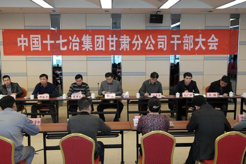 1229,甘肃分公司召开干部大会,公司副总经理蔡进、方荣华出席会议。公司副总工程师、发展改革部部长李中元在会上宣布了《中国十七冶集团关于甘肃分公司管理关系调整的通知》及新任领导班子成员的任命文件。