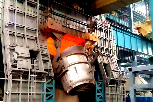 1月11日上午,中国十七冶集团有限公司冶金工程技术分公司承建的山钢日照炼钢精品基地工程二步车间加料高跨380吨行车平稳将铁水包内炽热的铁水倒入3#转炉,经过40分钟冶炼,顺利生产出第一炉合格钢水,炼钢系统设备运行正常,3#转炉热试取得圆满成功。