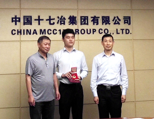 5月28日,马鞍山市交运局副局长张建华一行到中国十七冶集团,为交通工程技术分公司员工何振颁发安徽省“五一劳动奖章”。