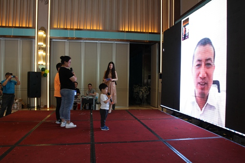远在6700多公里外的科威特大学城项目,十七冶中东分公司副总工程师朋卫华已在那里工作了7年时间。活动中,他的老婆及两个孩子通过视频连线,互相问候。“好久没见了,儿子,想我不?”远在科威特建设工地的朋卫华,通过视频向妻子和孩子问好。看到老婆、孩子高兴的样子,朋卫华也显得很兴奋,“老婆,你在马鞍山把家和孩子照顾好,我在外地工作就放心了。”听到丈夫的话,朋卫华的妻子石婕心里很激动,“老公,我和孩子都挺想念你,今年我们一家人终于能在一起团团圆圆过个节了。”