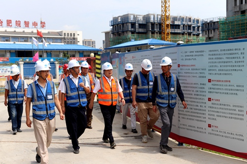 814日,中国十七冶集团总经理、党委副书记刘安义一行到城建分公司合肥毓秀雅苑项目部检查指导工作。公司安全总监时华钢信息化部副部长葛强城建分公司党委书记笪义青、副经理余世红等参加了检查。