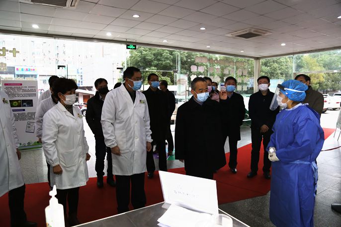 3月1日下午,马鞍山市委书记张岳峰、副市长阚青鹤一行来十七冶医院督查新冠肺炎疫情防控工作。