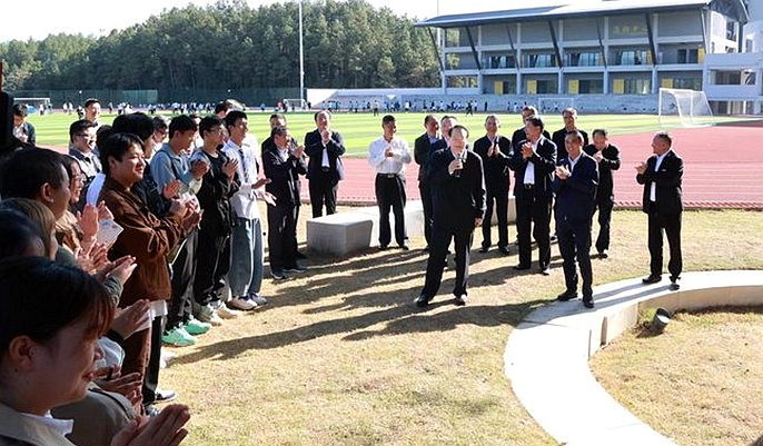 易炼红书记一行沿着校园主干道,一路走、一路看,实地查看了大学内部建设情况,对景德镇艺术职业大学依山傍水、绿树成荫、别具一格的设计和建设成果表示称赞,对十七冶建设者在项目建设过程所付出的辛劳给予了高度赞扬。易炼红书记指出,景德镇艺术职业大学项目不仅事关景德镇,也事关江西省的发展,希望与十七冶集团同心协力、高标准做好项目建设;不仅要立足当下、着眼长远,从严从细抓监管,精益求精保质量,继续坚持高标准、高质量要求,科学合理调配资源,加快项目建设步伐,圆满完成后续施工任务,打造精品工程。