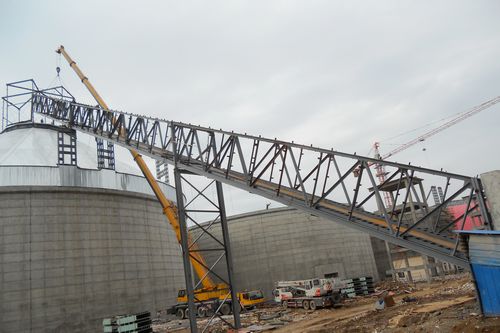 芜湖海螺三期熟料输送斜拉链钢桁架吊装成功