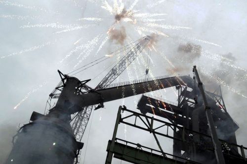 920下午,新钢8#高炉施工现场,由冶金工程技术公司承建的新钢8#高炉工程下降管历时36分钟顺利吊装到位。至此,该工程大型钢构件吊装全部结束。