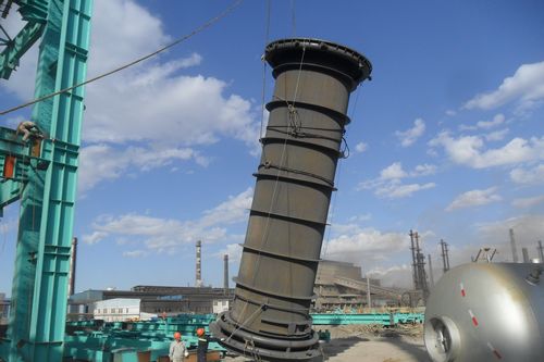 926,新疆八一钢铁150t转炉炼钢工程设备安装第一吊——汽化烟道斜Ⅰ段一次吊装成功。