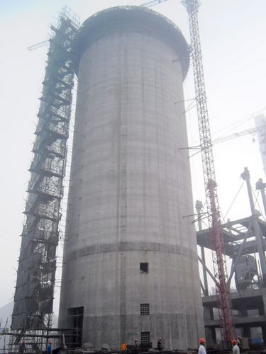 该生料库是水泥生产线的主要子项工程,项目部对此极为重视。施工中,项目部精心组织,确保滑膜施工顺利进行。其混凝土观感良好,内在质量完全符合设计和规范要求,受到了业主、监理和设计单位的一致好评,同时也为主体结构工程按期完成创造了条件。