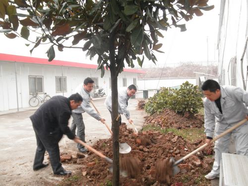 早上8点,在项目经理季学武的带领下,各部门组员分工合作,轮流挖树坑、配树苗、填土、灌水。通过团结协作,仅一个多小时,项目部办公区顿显勃勃生机,不仅美化了工作生活环境,而且使员工在紧张的工作之余身心得到了放松,增强了环保意识和团队凝聚力。