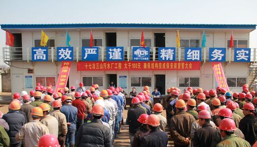 37上午,城建工程技术公司芜湖三山滨江污水处理厂项目部召开“大干100天,确保结构完成保安装”宣誓大会。城建工程技术公司经理、党委书记伍昌国、业主和监理代表以及项目部员工150多人参加了宣誓大会。