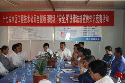 61水泥工程技术公司在全椒海螺项目部开展了为期一天的宣传教育活动,并对“安全生产月”活动进行了动员和部署。水泥工程技术公司副经理曹宗国,各项目经理部、专业工程处安全管理人员以及机关职能部门负责人参加了活动。