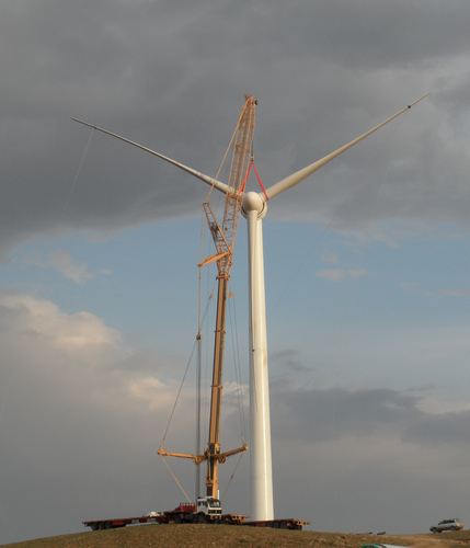 内蒙古化德风电场首台金风1.5MW风机吊装成功