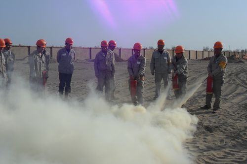 为有效保证此次演练的顺利进行,项目经理部对参加演习的现场人员进行了明确分工,针对克拉玛依市当地少雨常年干燥的特性,精心制定了演习科目。对发现火情、接警、安全员带队灭火、分组演练、撤离现场等项目进行了演习,并在活动结束后对重点环节进行了点评。