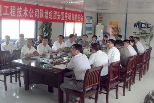 523下午,马鞍山超山花园廉租房项目部召开推进会,就如何确保一期工程年底交工和二期工程进度计划做了安排。公司总经理助理、中冶置业(安徽)公司总经理王振堂,中冶置业(安徽)公司副总经理桂光红、唐翠红,城建工程技术公司党委书记、副经理王建林和项目管理人员参加了会议。