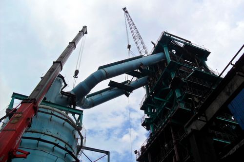 69下午,由十七冶江西分公司承建的萍钢450m3高炉大修工程重约35t的下降管提前2天顺利吊装就位。至此,该工程大型钢构件的吊装全部完毕。
