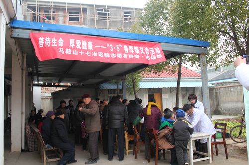 33上午,十七冶医院志愿者协会在和县善厚镇开展“践行雷锋精神”义诊服务活动。来自肾内科、内分泌科、外科、骨科、妇产科、康复科等十个科室的医护人员参与了此义诊活动,提供了医疗质询、测量血压、血糖等服务。
