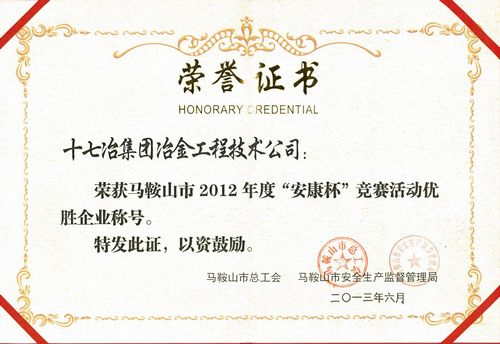 日前,从马鞍山市总工会和马鞍山市安全生产监督管理局获悉,十七冶冶金工程技术公司荣获马鞍山市2012年度“安康杯”竞赛活动优胜企业称号。