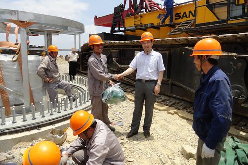 炎炎夏日送清凉,丝丝关爱寄深情。620日下午,在建党92周年来临之际,风电公司经理、党委书记高胜勇,总工程师陈登明一行深入湖北利川汪营风电项目施工现场开展“送清凉”专项活动。