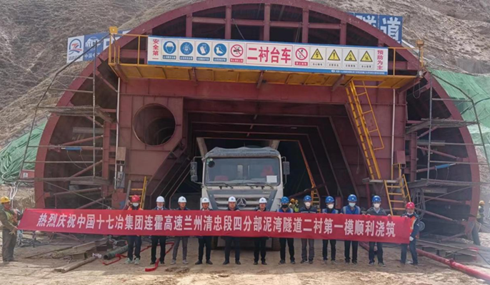 4月17日上午,中国十七冶集团路桥工程技术分公司承建的G30连霍高速兰州清忠段项目泥湾隧道第一板板二衬浇筑。