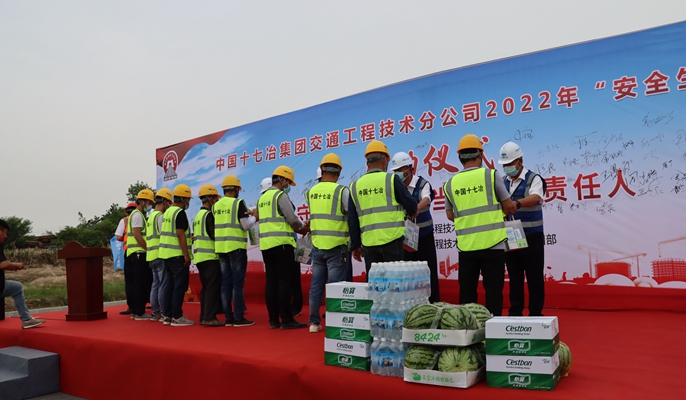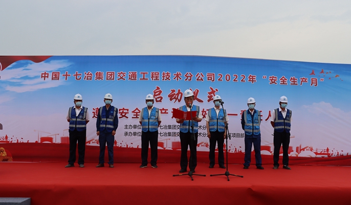 6月1日上午,中国十七冶集团交通工程技术分公司在当涂西部城区项目奥克斯大道举办“遵守安全生产法当好第一责任人”为主题的全国第二十一个“安全生产月”启动仪式。马鞍山市广电台、马鞍山日报等媒体、交通分公司领导班子成员、机关全体人员以及当涂经开区PPP项目、返乡农民工创业基地项目、滨江四期一组团项目、姑孰安置房项目管理人员和作业人员代表等共计150余人参加仪式。