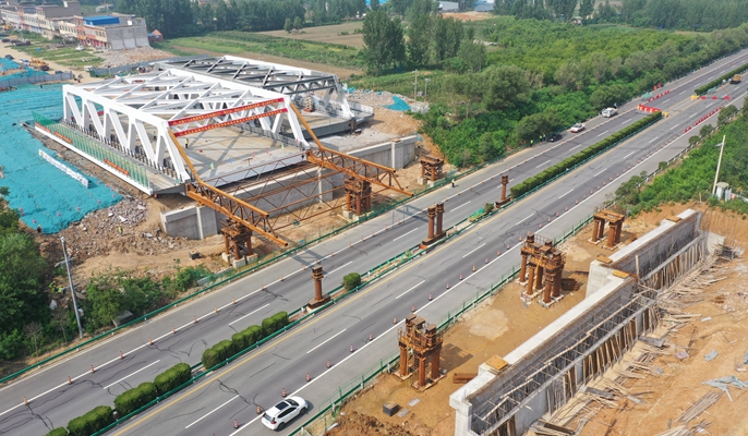 7月14日,由中国十七冶集团路桥工程技术分公司承建的河南S231(新S234)鸭河工区至南阳市区段一级公路改建工程(卧龙段)开始跨商南高速分离式立交桥钢桁梁顶推施工。