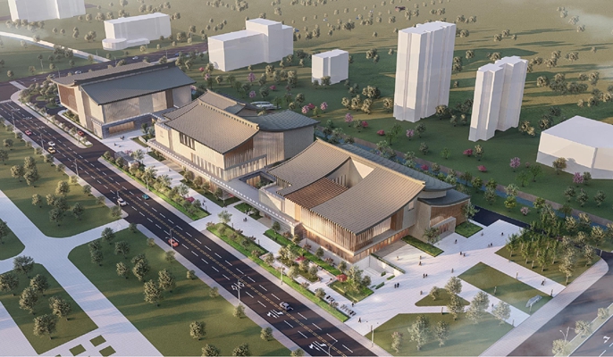 该项目位于灵璧县政务中心区,紧邻灵璧县政府,包含1栋图书馆、1栋博物馆、1栋文化馆及1处地下车库,单体通过室外连廊连接,总占地面积7900.28平方米,总建筑面积26573.89平方米,设计使用年限均为50年,地震设防烈度均为7度。单体方案结合山水意向及中国传统建筑特色,立面采用石材,木材等传统材料结合玻璃等现代材质,营造富有传统特色的现代建筑形象。