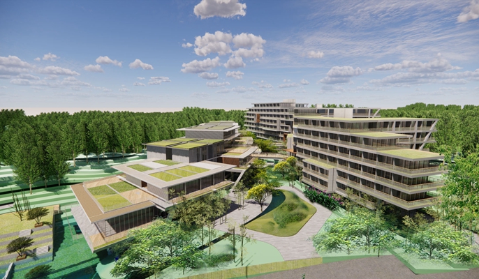 景德镇艺术职业大学A区工程项目位于江西省景德镇市珠山区景德镇北站北侧,总计三个组团,其中F组团艺术设计酒店总建筑面积43430平方米,地上27105平方米,地下16325平方米。工程共有五个单体分为公共区和客房区,公共区建筑层数4层,建筑高度16.75米;客房区建筑层数6层,建筑高度23.95米。五个单体依山而建、背靠山体,现场场地狭小,只有一条主路运输材料。
