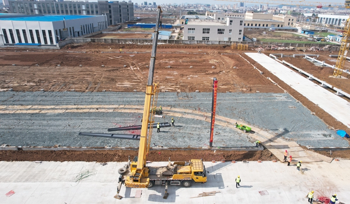 含山金桥产业合作园四期项目子工程位于含山县经济开发区,用地面积约151.62亩,新建总建筑面积74969.51平方米,项目主要建设内容包括厂房、办公楼、宿舍楼及门卫等附属工程,建成后为金属冷加工厂区。为保证此次吊装顺利进行,项目部主动作为、多方联动,积极推进节后复工复产各项工作,稳定施工材料供应、补齐人力资源短板。在施工前对作业人员进行详细的安全技术交底,严格按照施工设计组织施工,充分保障吊装施工的质量与安全。项目部将持续发扬“一天也不耽误,一天也不懈怠”的企业精神,践行“24小时工作法”,高效推动项目施工进度,真抓实干、多措并举,筑造高品质工程。