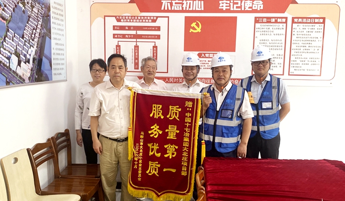“有一种工程品质叫做十七冶建造,有一种施工品行叫做十七冶服务,感谢你们团队的辛苦付出!”10月9日上午,马鞍山市大北庄小区业主委员会代表将一面印有“质量第一 服务优质”的锦旗送到马鞍山大北庄老旧小区整治改造项目部,对十七冶团队为民办实事、解民忧表示感谢。
