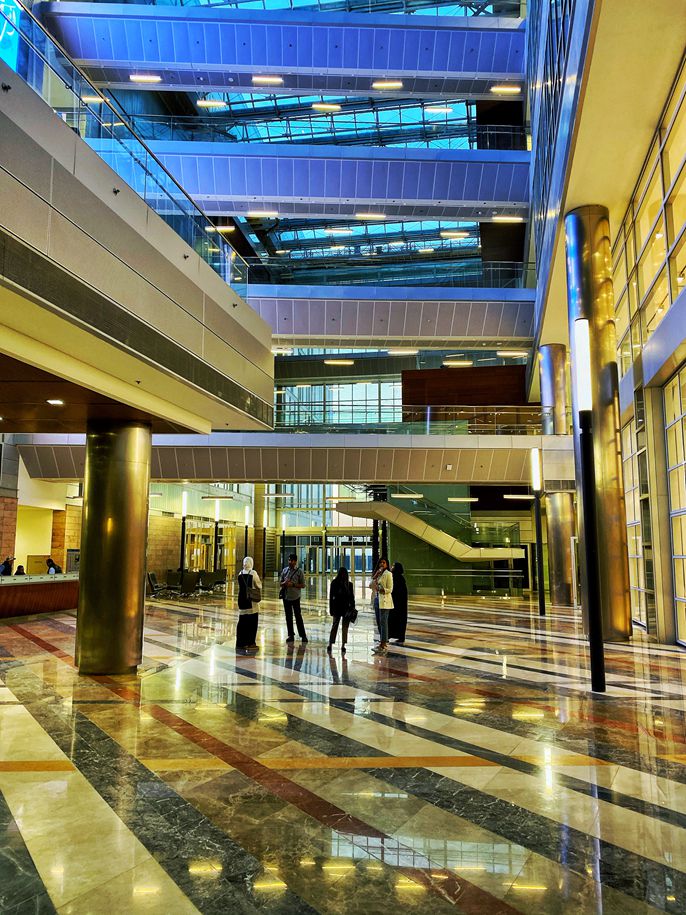 如今近7000名学生、教授和教务人员已在新校园学习办公,置身于宽敞明亮的学院中庭(Galleria Souk),炙热的太阳在施工严丝合缝的陶板阻隔下,泛着温暖的光斑照耀在整齐排布的木质凸窗上,将科威特的极端酷热拒之门外,即使挑剔连石砖配色选材都要反复磋商数十次的业主,都对十七冶项目的建设质量都竖起了大拇指。
