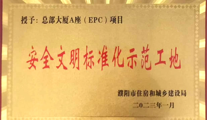 1月11日,濮阳市住房和城乡建设局发布了“关于2022年下半年度濮阳市建筑工程安全文明标准化示范工地的公告”,中国十七冶集团冶金工程技术分公司承建的濮阳总部大厦A座(EPC)项目荣获“濮阳市安全文明标准化示范工地”称号。