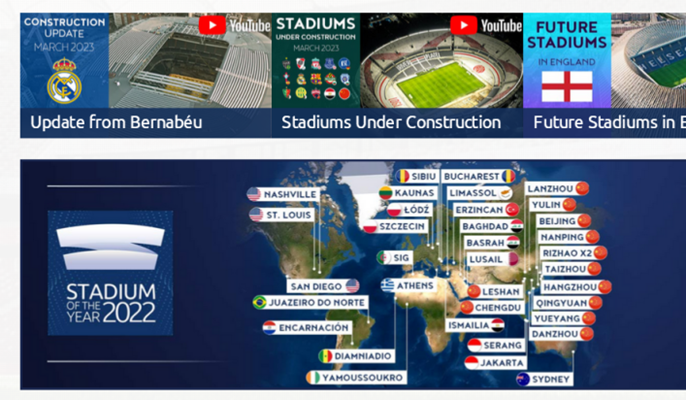 StadiumDB.com是全球知名的专业体育场数据网站,也是一个关注于足球场建设、运营及其背后历史的网站,目前已收录了全球建成的2127个体育场、990个体育场设计方案、248个在建体育场、144个锦标赛体育场和84个历史体育场。