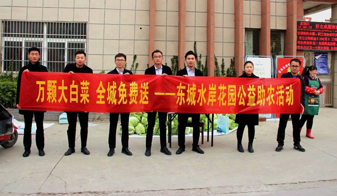 为了扶贫帮持低收入群体,助力菜农菜品销量,12月14日,中冶置业(安徽)公司安徽颍上县东城水岸花园项目组织开展“万颗大白菜全城免费送”公益助农活动。