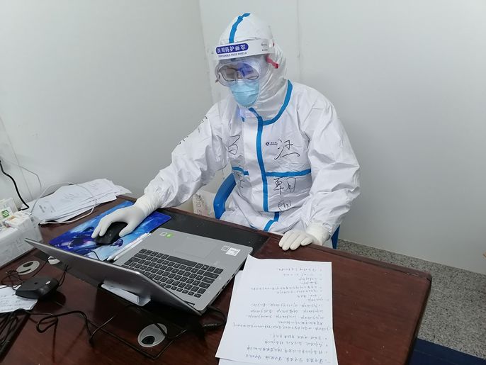 至出仓的时候已经晚上11点。舱内已收治了不下300人。一天辛劳的工作暂告一段落。汗水从额头流到嘴里的时候,却不觉得苦咸,反而有些清冽。就是耳后生疼,感觉脖子已经僵直了。想想王静护士长在重症监护室要比我们苦多了。