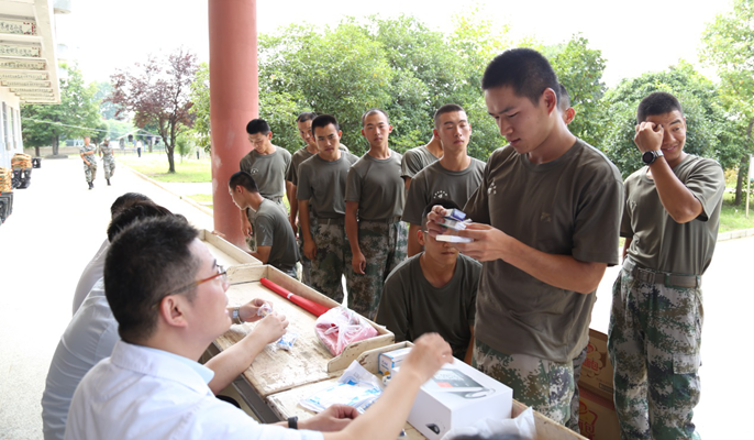 由于连日来的抗洪抢险,不少官兵因长时间被雨水浸泡,在闷热潮湿的环境中高强度奋战,出现了不同程度的皮肤损伤、湿疹等症状。十七冶医院皮肤科、口腔科、眼科、骨科、内科等科室青年骨干主动上前,为官兵们进行血压血糖测定、健康咨询和简单疾病诊治服务,提出健康指导建议,籍此表达对人民子弟兵的崇高敬意,并向他们致以节日问候和诚挚谢意,为他们长期以来坚守一线、不怕苦、不怕累,英勇抗击洪灾的精神点赞喝彩。驻地官兵非常欢迎医疗组的到来,感谢十七冶医院给予的温暖与关怀,并表示医务人员也是新时代最可爱的人,在抗击疫情和抗洪救灾中,军民携手同心、众志成城,一定能够夺取抗洪抢险和疫情防控的全面胜利。