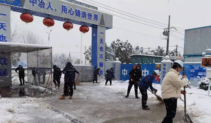 在马鞍山体校项目部,为保证现场人员设备安全,道路畅通,施工顺利,项目部第一时间启动扫雪除冰专项应急预案,成立了由项目经理为组长的应急领导小组,周密部署雨雪天气应急工作。在施工现场、围挡内外、沿路周边等重点部位组织工人进行扫雪除冰及洒盐化雪工作,确保雪不过夜,严防冰冻灾害发生。对所属工程机械逐一进行检查,排净各部位的水,以防冻裂机体,对正使用的机械及时添加防冻液。带班领导及安全员加强值班巡查工作,及时消除隐患。配合交警部门,组织员工清除项目周边路段积雪,保障道路畅通。