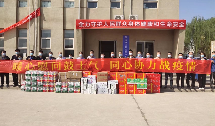 4月19日下午,十七冶保定深圳园道路工程项目部联合相关单位前往保定市方舱医院开展“暖心慰问鼓士气、同心协力战疫情”慰问活动。