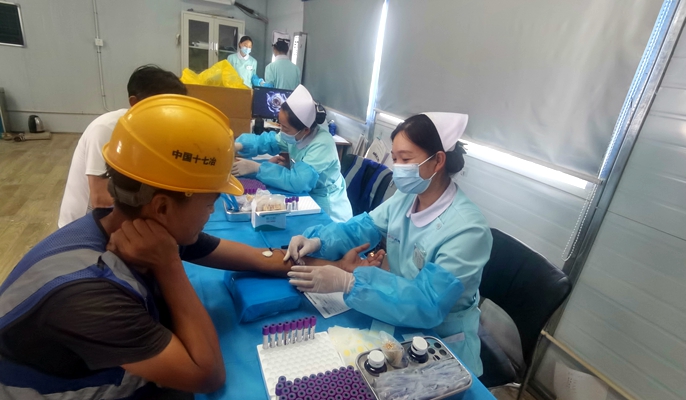 为切实关心一线施工人员的身心健康,有效预防疾病危害,创造健康和谐的工作环境。7月23日,中国十七冶集团冶金工程技术分公司濮阳大数据项目部组织开展一线工人健康体检活动,特意请当地专业医护人员携医疗设备前往项目部,为400余名工人进行了集中体检,切实将关心关爱工友工作落到实处。