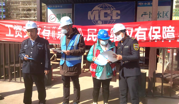 为进一步推动《保障农民工工资支付条例》落地见效,保障农民工合法权益,3月16日下午,中国十七冶山东分公司泗水县城投诚园项目部邀请泗水县人社局劳动监察院副院长张国锋,到施工现场开展《保障农民工工资支付条例》宣传活动。