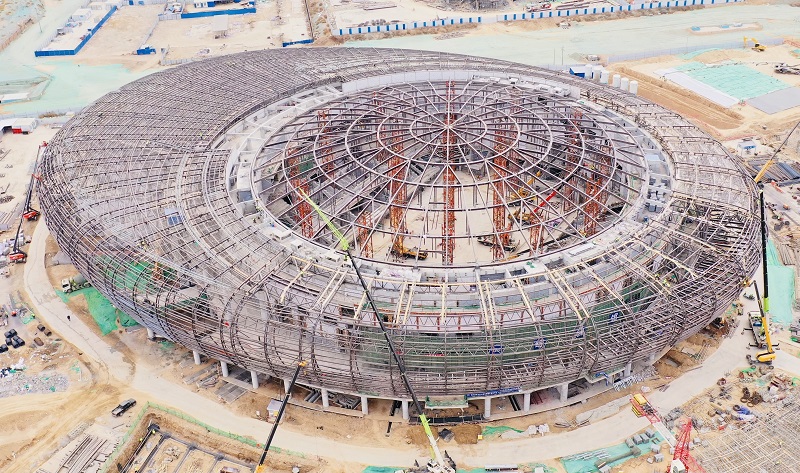 4月5日,中国十七冶集团建筑工程技术分公司承建的兰州奥体中心项目综合馆工程弦支穹顶五道环索全部完成第三级张拉作业,迎来了里程碑节点。此次综合馆弦支穹顶结构张拉工作顺利完成,标志着综合馆钢结构全面收尾完毕。