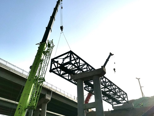 为保证三月底贯通产业路管线桥节点目标的实现 ,项目部积极响应公司“创先争优、实现全年营业收入400亿元”劳动竞赛号召,迅速掀起“百日大干”热潮。在管线桥钢桁架焊接拼装、吊装运输的施工过程中,从施工组织、资源配置、安全管控、疫情防控、比选吊装方案等方面入手,将节点目标任务层层落实,层层分解。面对复杂的地势地貌和连续降温天气,项目部加强对参建特种施工人员的安全教育培训和技术交底,克服了吊装场地狭窄、跨度大、高度高、风力大等各种不利因素,通过全体参建人员半个月的日夜奋战,圆满完成145吨钢桁架吊装施工任务。在园区道路水稳基层摊铺施工过程中,项目部精心组织,科学部署,克服了交叉作业、阴雨天气影响,加强对参建员工的安全教育培训和施工技术交底,施工过程中路面工程技术人员现场跟踪服务,从水稳混合料的拌合、运输、摊铺、碾压、养护等各个工序环节狠抓质量管理,所有完工水稳基层的标高、压实度、平整度、厚度等各项技术指标经监理、试验单位的检测均符合规范和设计要求,确保每段水稳基层摊铺一次性检测通过,圆满完成了水稳基层摊铺施工节点任务,为推进项目各项节点任务的顺利完成,实现该项目如期竣工奠定了坚实基础。