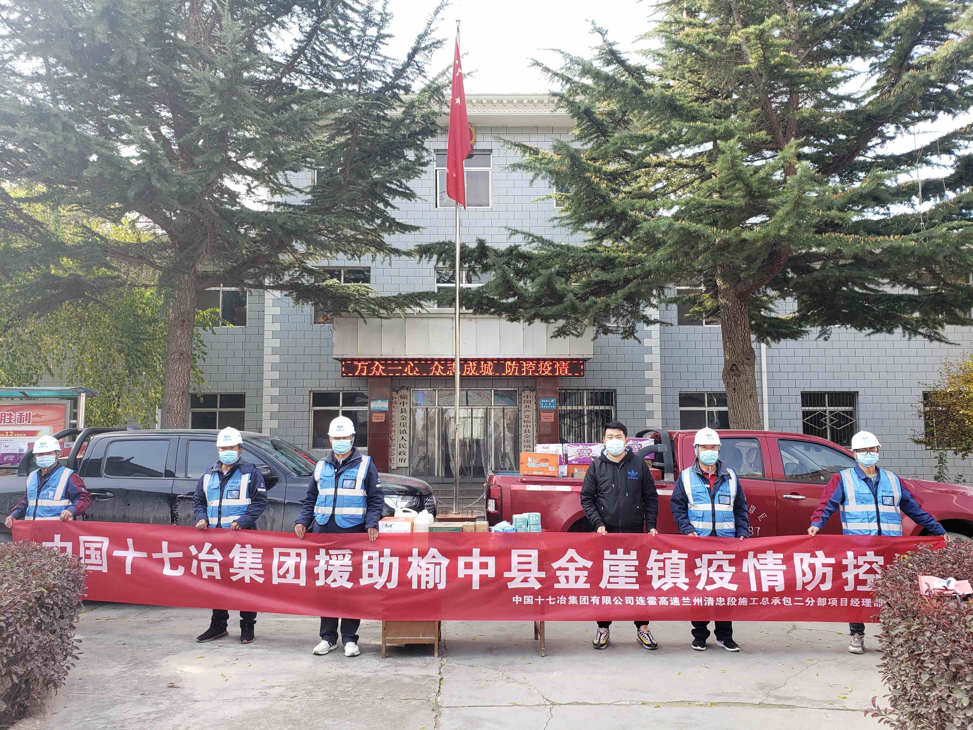 10月24日上午,中国十七冶集团公路分公司承建的G30连霍高速二分部组织的2辆疫情物资运输车辆抵达甘肃省榆中县金崖镇,为一线防疫人员送上急需的口罩、消毒液、矿泉水和方便面等物资,为甘肃省榆中县疫情防控积极贡献力量。