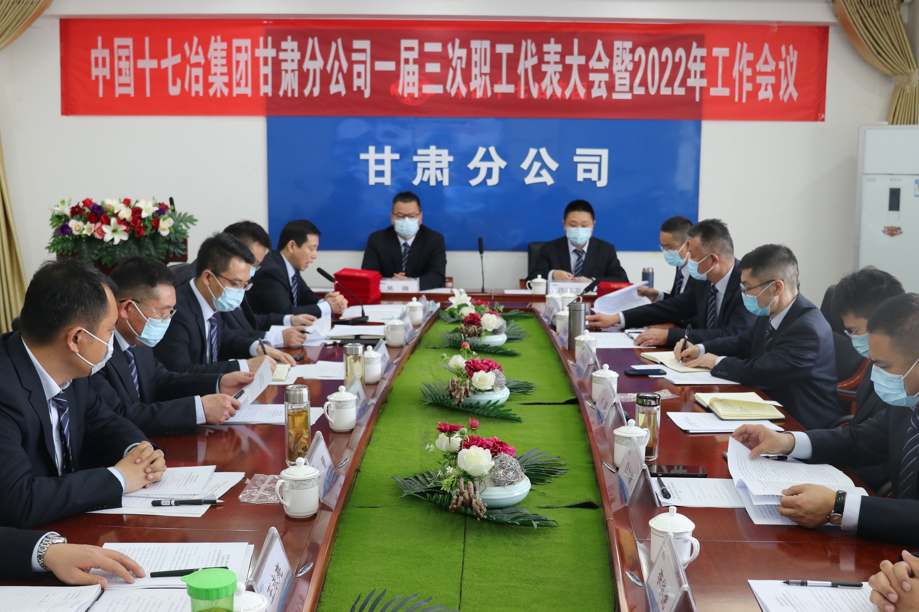 1月21日下午,中国十七冶集团甘肃分公司召开一届三次职代会暨2022年工作会议。甘肃分公司领导班子成员、经理助理、副三总师、机关部门负责人、项目经理及职工代表等在主会场和视频分会场参加了会议。为进一步严格落实疫情防控工作主体责任,会议以“主会场+视频分会场”形式召开,所有会场均按要求制定并落实参会人员疫情防控措施。
