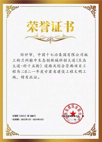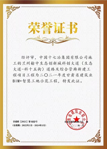 二月春风到西北,传入喜讯满金城。中国十七冶集团公路工程技术分公司承建的兰州榆中生态创新城科创大道项目经理部荣获“2021年甘肃省文明工地”、和“2021年BIM+智慧工地示范工程”称号。