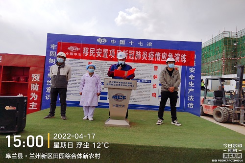 为加强项目疫情防控工作,提高项目应急处置能力,检验发生突发疫情事件发生时现场的配合和协作水平,4月17日下午中国十七冶集团甘肃分公司承建的兰州新区承接灾后重建移民搬迁安置农村住房及配套设施项目联合业主、监理单位以及医护人员在现场开展疫情防控应急演练。