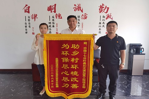 6月10日上午,中国十七冶集团公路分公司承建的河南叶县PC大道项目收到叶县盐都街道郑庄社区赠送的“助乡村环境改善,为环保尽心尽力”锦旗,对项目部组织进场施工以来的环保管理工作所付出的努力表示诚挚的感谢。