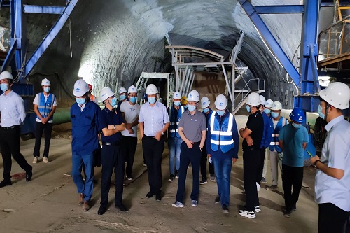 牛思胜巡视员一行深入项目施工现场,在凤凰山隧道进口仔细查看了隧道安全管理八大系统应用情况,认真参观了安全体验馆,详细了解了现场安全、质量、进度情况和现场施工中遇到的重难点问题,并对施工工序及工艺方面提出建设性意见。牛巡视员对现场进度、质量、安全文明施工以及项目各项工作给予了肯定,同时强调隧道智慧管理系统要真正应用并起到实效,能够真正起到辅助隧道施工监控及管理,要加强与设计单位沟通,合理变换施工工艺,在保证安全质量的前提下,确保施工进度。